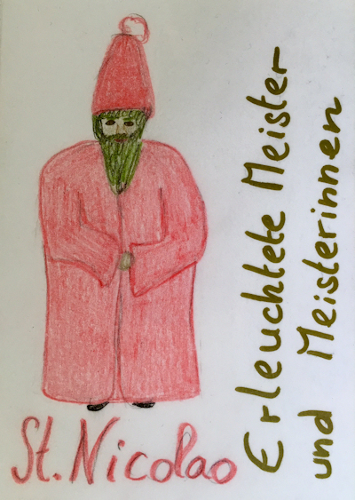 S.Nicolao, Erleuchtete Meister und Meisterinnen Nicht alle, die wir Menschen als MeisterInnen bezeichnen, sind es wirklich. Doch es gibt viele MeisterInnen, von denen wir nichts wissen. Ihre Eigenschaft besteht darin, dass sie jetzt aus dem Himmelreich wirken und frei sind. Doch zu einer vergangenen Zeit, wandelten auch sie auf Erden und kennen Leid und Schmerz. Sie haben grosses Mitgefühl und Verständnis für unsere Nöte. Jede(r) MeisterIn spezialisierte sich auf ein bestimmtes Thema. Dir erscheint jene himmlische Hilfe, die sich mit Deinem Leid gut auskennt und bei der Du bereit bist, deren Hilfe anzunehmen. |