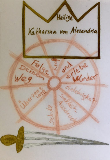 Heilige Katharina von Alexandria Katharinas Überzeugungskraft, Gelehrigkeit und Selbstausdruck berühren Dich mit dieser Einweihung. Sie steht jenen bei, die mutig ihren Weg gehen und beschützt sie. Sie fordert Dich nun auf, Verantwortung zu übernehmen und Deinen eigenen Weg zu begehen. Sie wird Dir beistehen und Dich beschützen. Nimm Deinen Platz ein. Finde zu jeder Gelegenheit die passenden Worte. Folge Deiner Bestimmung. Rufe Katharina, wenn Du Dich dabei verunsichert fühlst. |